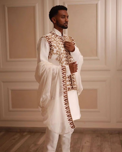 The groom, meanwhile, may wear a traditional Habesha libs, paired with a regal Kaba – a cape-like garment edged with gold embroidery. Together, the couple’s appearance is not just stylish; it reflects cultural pride.