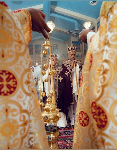- Ethiopian Orthodox Christian weddings often take place inside a church, with the priest blessing the couple and placing crowns on their heads, declaring them the king and queen of their new household. The ceremony, filled with incense and chanting, emphasizes the sanctity of marriage.